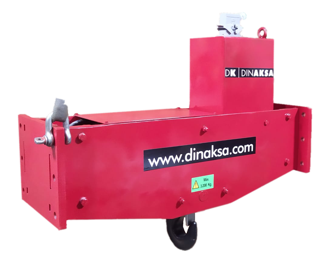 La estructura inferior, fabricada en acero estructural S275JR o S355J2 mediante construcción electrosoldada, presenta configuración adaptable según la aplicación específica: puede materializarse como viga recta simple para cargas simétricas, configuración en H para cargas rectangulares que requieren cuatro puntos de sustentación, o geometrías especiales diseñadas a medida para elementos de forma irregular. Esta estructura incorpora los puntos de enganche inferiores que conectan con la carga mediante eslingas, ganchos, grilletes o sistemas de sujeción especializados según las características del material a manipular.
